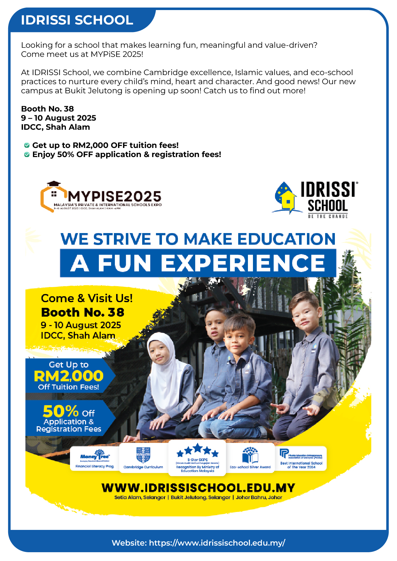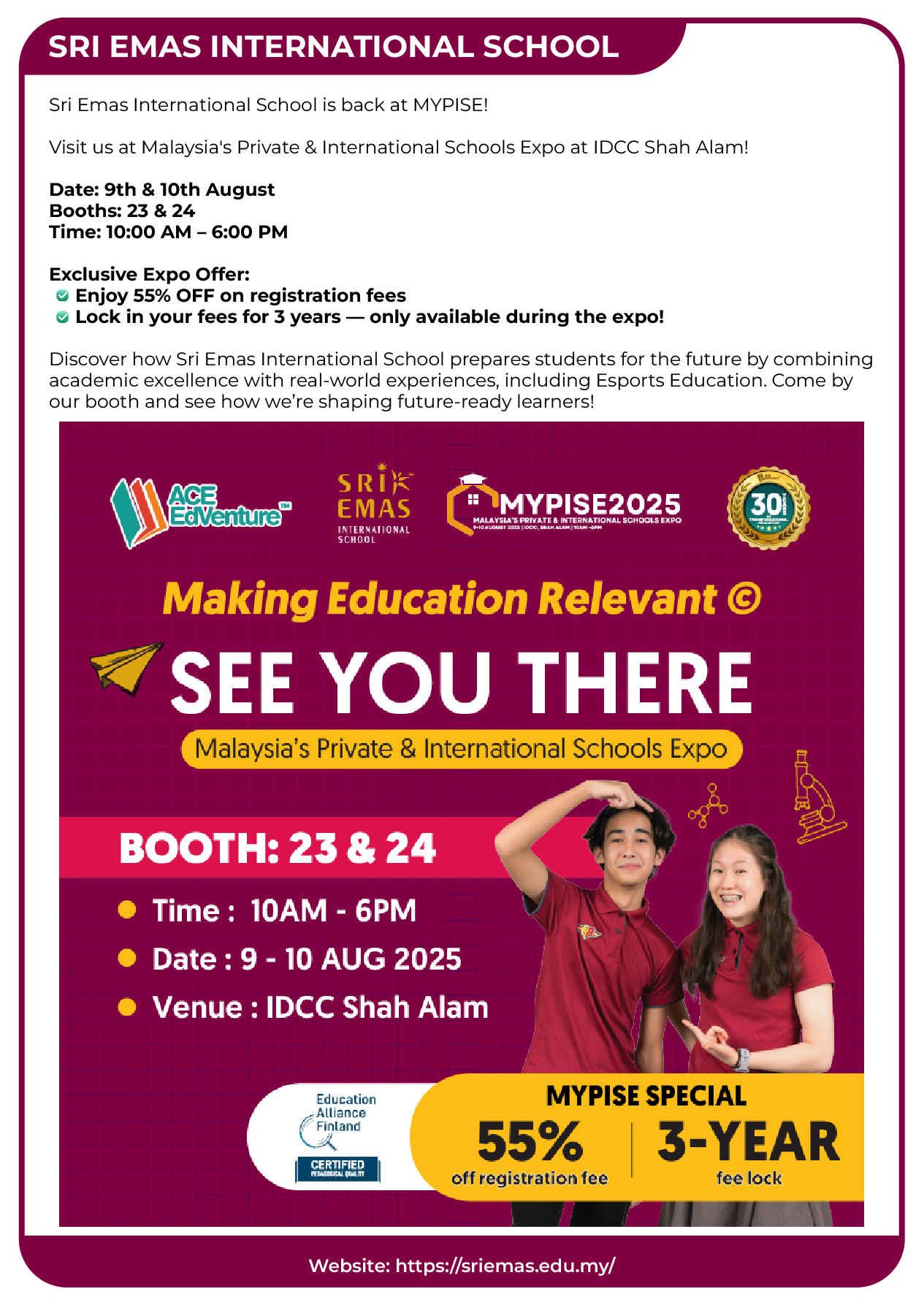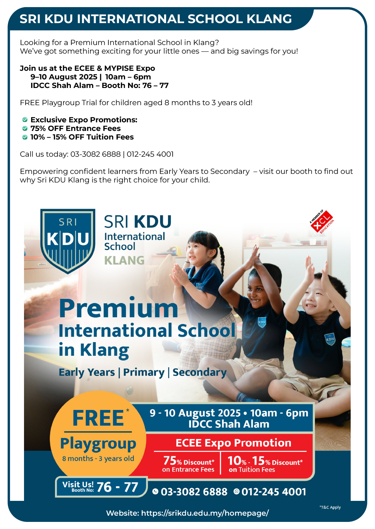 🌏 Dive into 2 full day of discovery, connection, and inspiration with leading international schools from Shah Alam areas. Whether you're a family exploring educational options or a student planning your future, this event is your doorway to global learning opportunities.