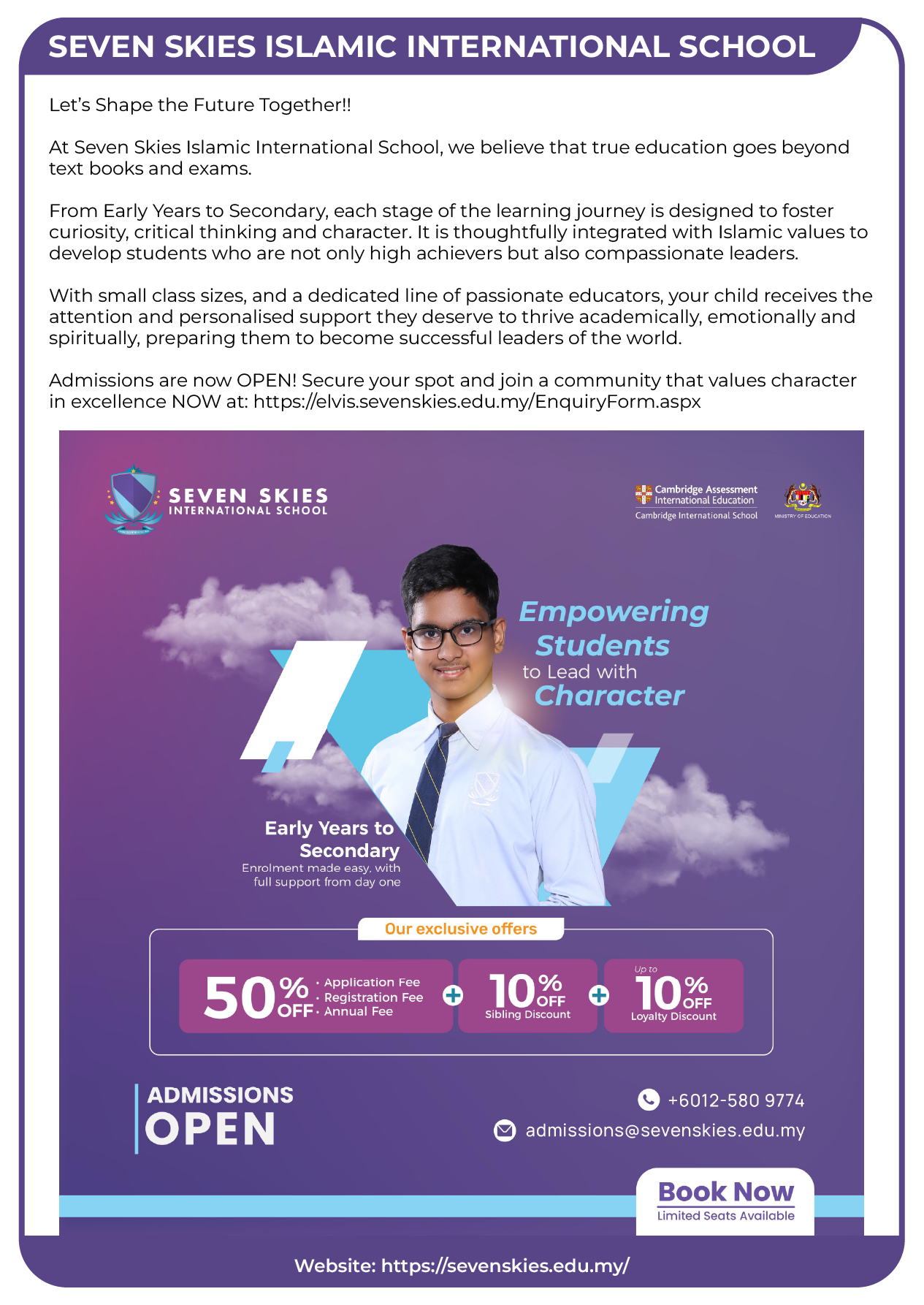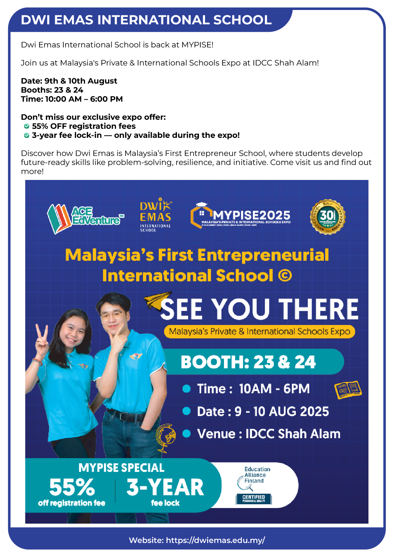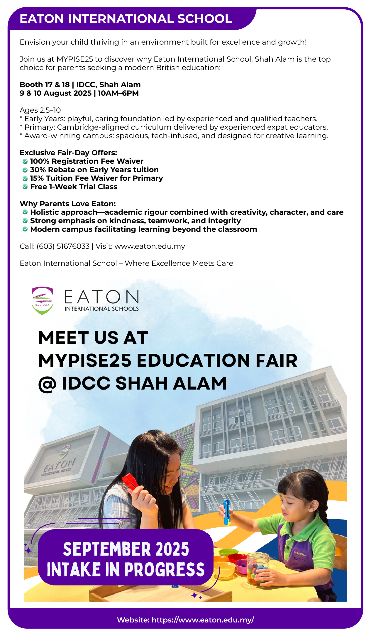 🌏 Dive into 2 full day of discovery, connection, and inspiration with leading international schools from Shah Alam areas. Whether you're a family exploring educational options or a student planning your future, this event is your doorway to global learning opportunities.