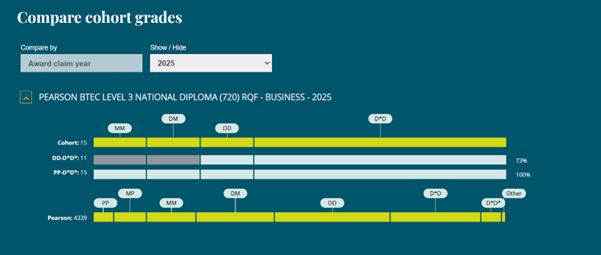 Select your qualification and session and you’ll get a report comparing your students’ overall grades to the distribution across all students registered on that qualification.