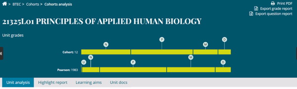 You’ll see a new ‘Get cohort grade reports’ tile on the ResultsPlus BTEC landing page when you first log in.