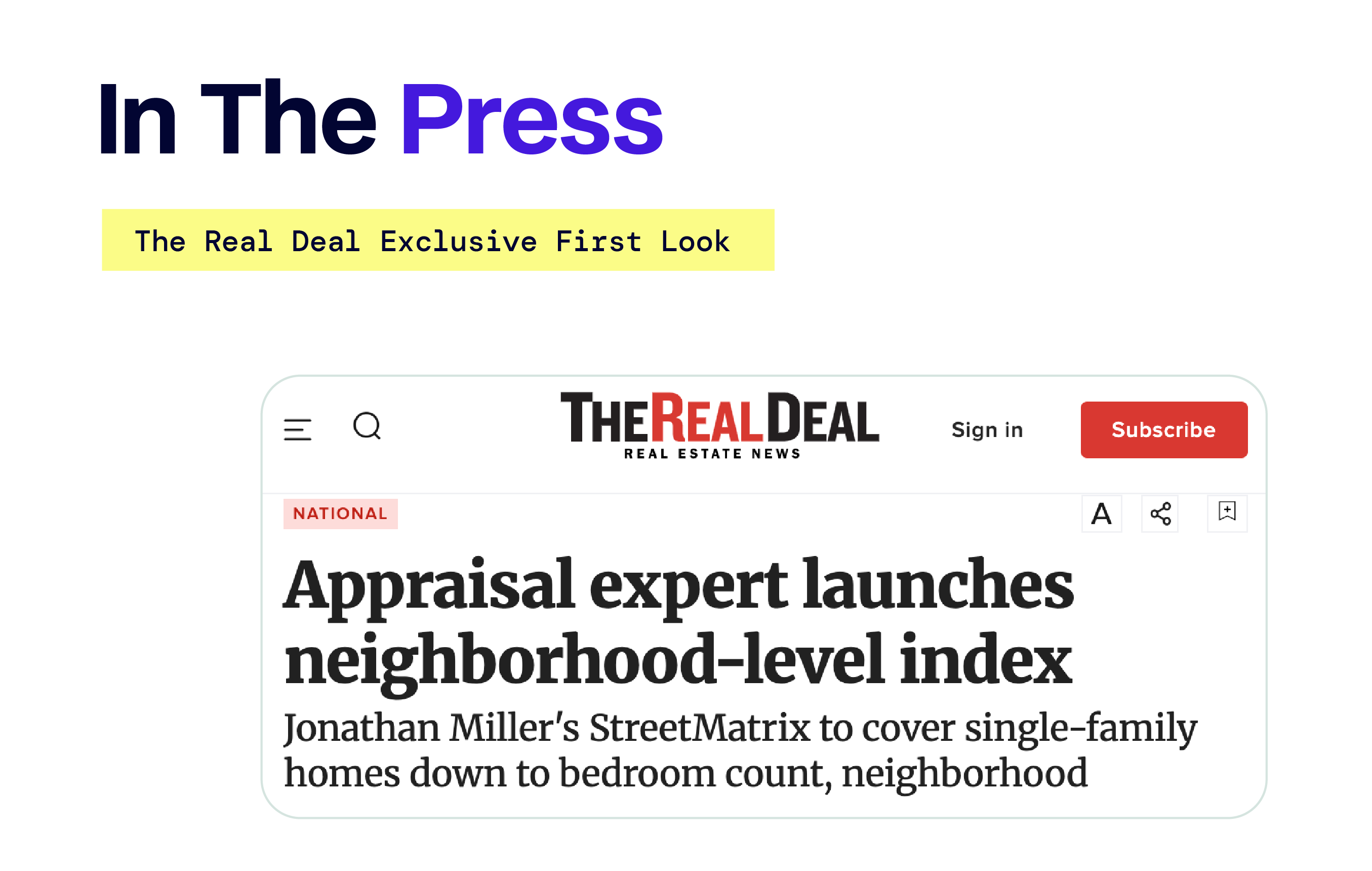Hyper-local housing insights built for finance, real estate, and insurance professionals.