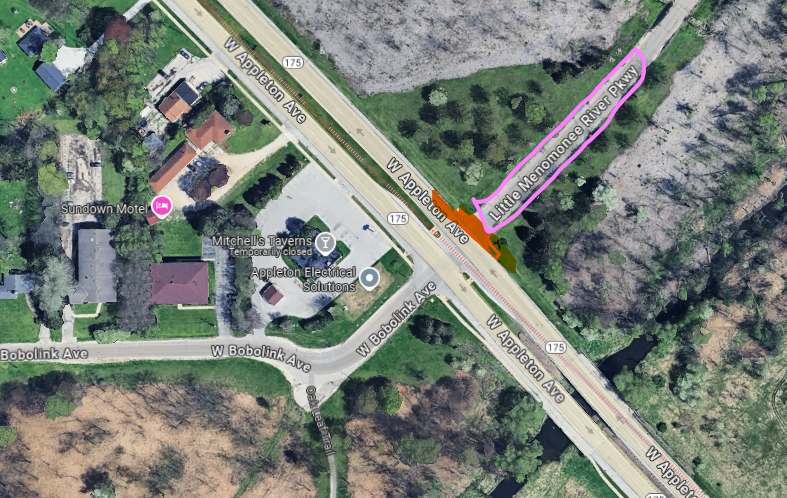 Across the street from 10433 W Appleton Ave, is the Little Menomonee River Parkway Trail Entrance where we'll meet, at West Appleton Avenue and Little Menomonee River Parkway Milwaukee, WI.