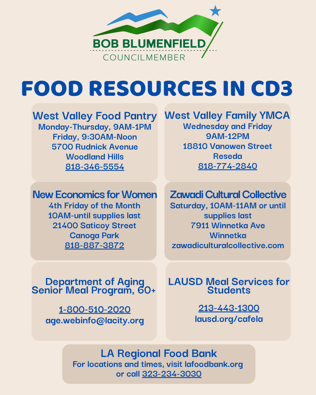 As the federal government shutdown continues and disrupts critical nutrition funding, your donations make a difference more than ever. Below you will find a list of food resources in the West San Fernando Valley. |