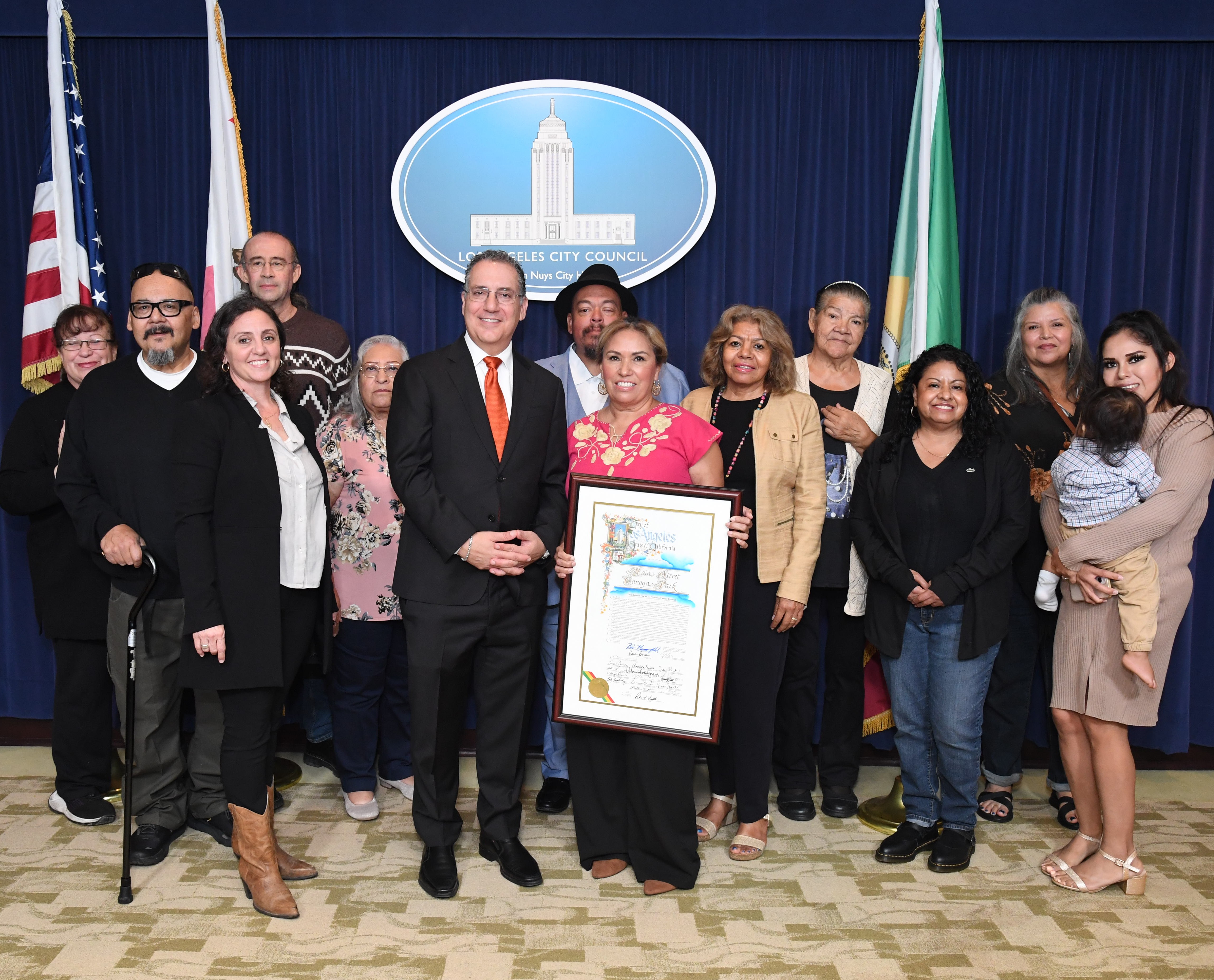 Councilmember Blumenfield was proud to honor Main Street Canoga Park for celebrating 25 years of the Annual Día de los Muertos Festival in Canoga Park! Blumenfield thanked Aida Lacio, Jaclyn Bernstein, Mary Paterson, and the incredible team of volunteers who’ve worked tirelessly to bring this beloved community event to life year after year. Blumenfield also recognized some of the founders, Laura Gutierrez and Arely Esqueda, who helped launch the very first festival 25 years ago. |