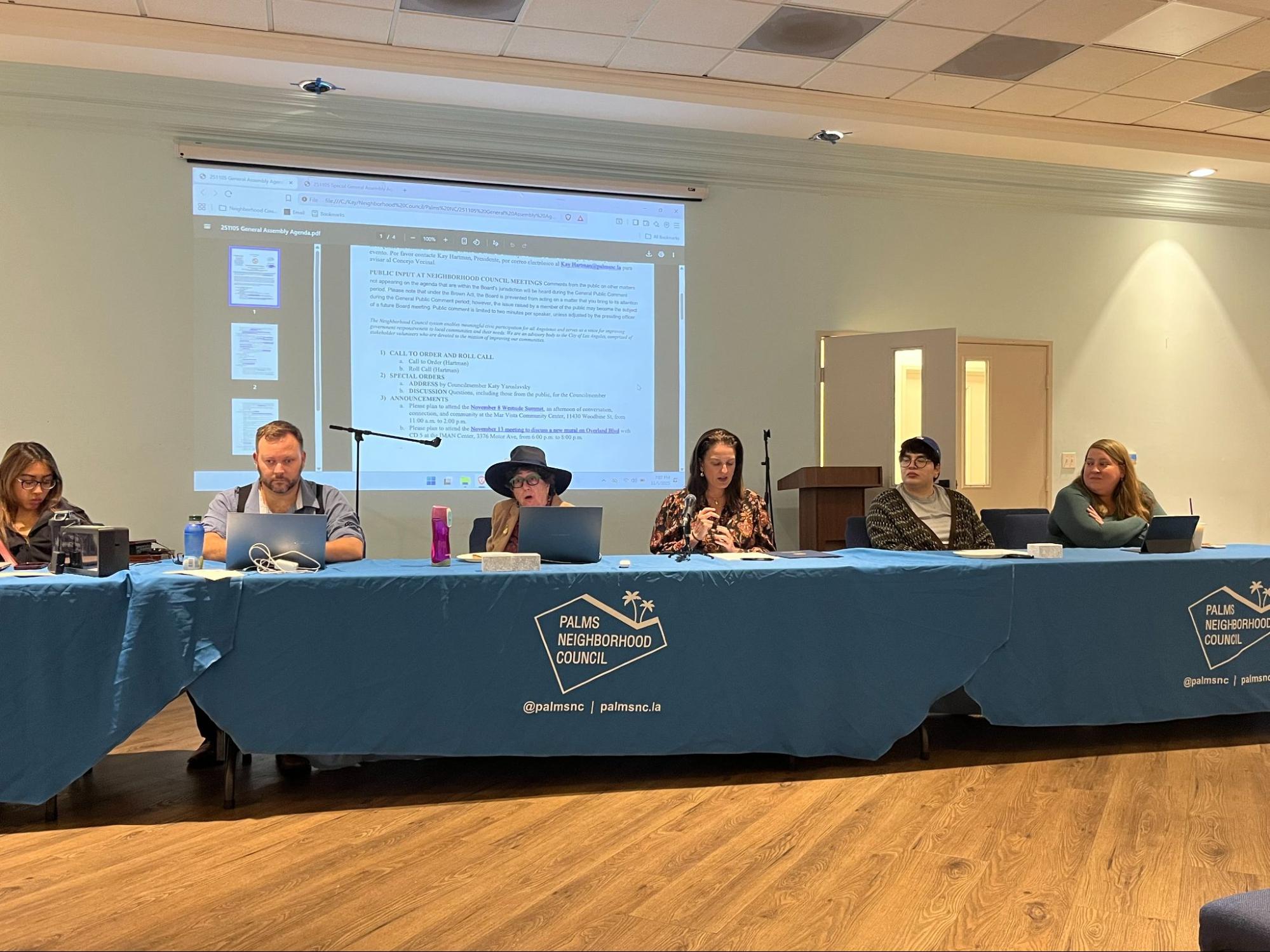 Last week, I joined the newly elected Palms Neighborhood Council for their November meeting. We discussed homelessness, public safety, and the neighborhood’s urgent need for more green space. Palms has some of the least park access in Council District 5, and my office is working on solutions to bring new community spaces online. I also shared updates on the City’s efforts to make intersections like Woodbine and Motor safer, and on our continued work to hold problem property owners accountable. |