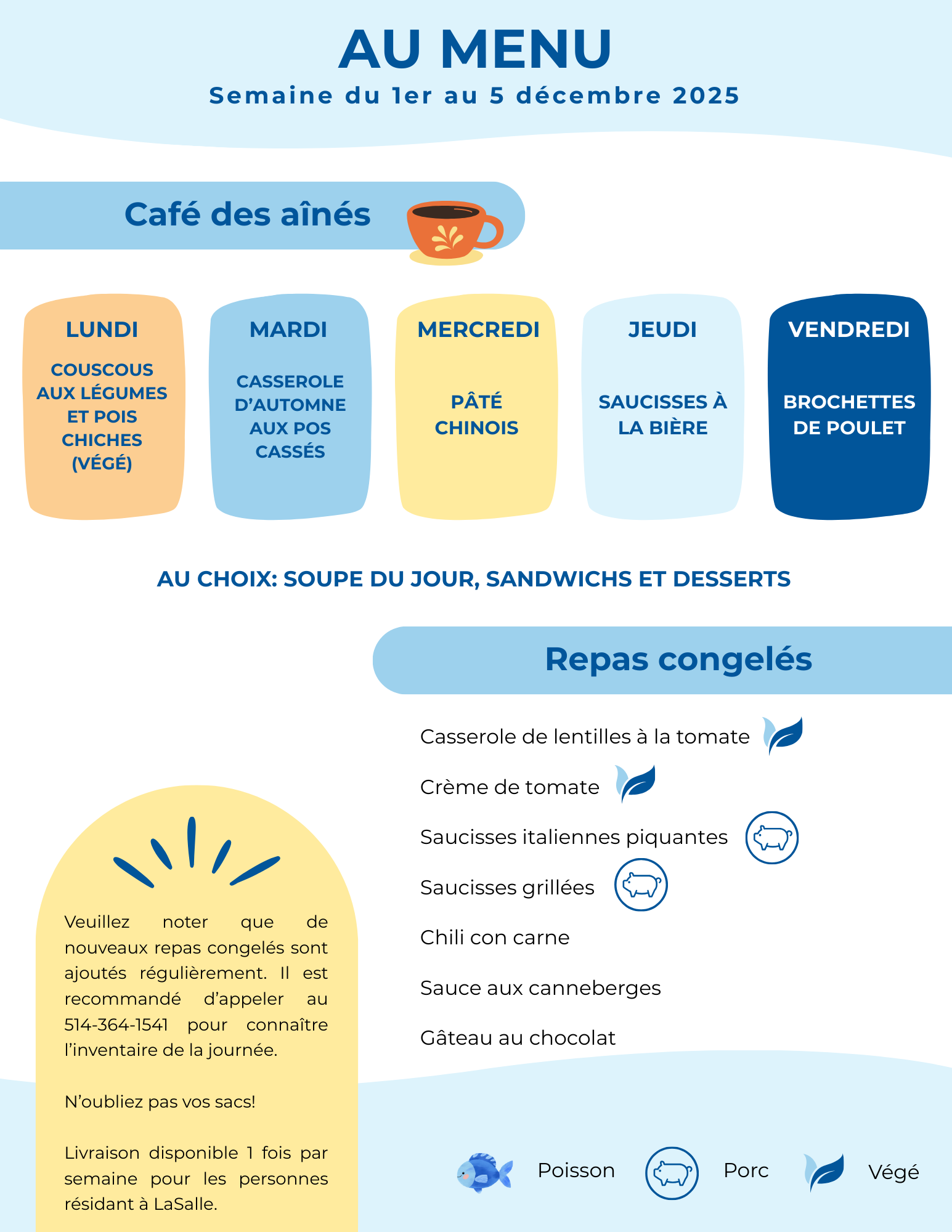 Au menu: semaine du 1er au 5 décembre 2025 |