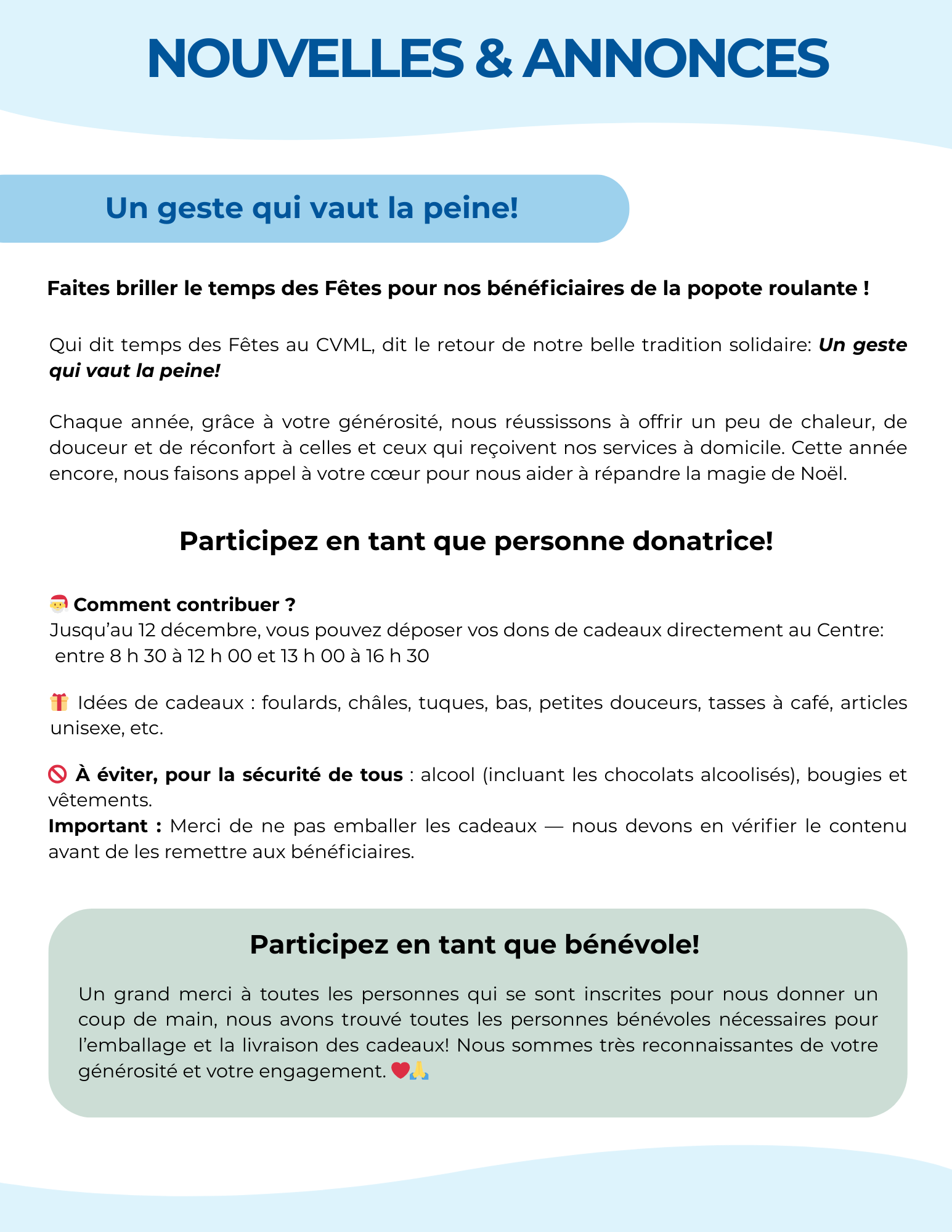 Nouvelles & annonces: Un geste qui vaut la peine |