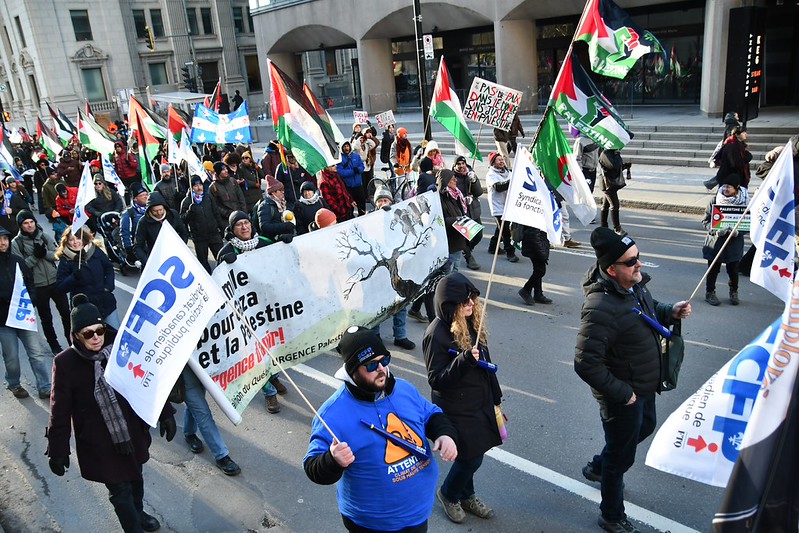 - 29 novembre 2025 : Participation à la manifestation syndicale, communautaire et de solidarité internationale Dans la rue pour le Québec, au sein d'un contingent Palestine.