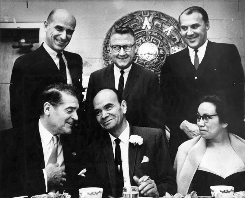 This week's photo from the Los Angeles Public Library's archives is from the Valley Times Collection taken in 1964 of Francis Lederer, honorary mayor of Canoga Park, chatting with Mayor Luis Tellez Bustamante and Mrs. Bustamante of Taxco, Mexico, at dinner honoring the couple during a sister City visit to Canoga Park. Learn more about the photo here. |