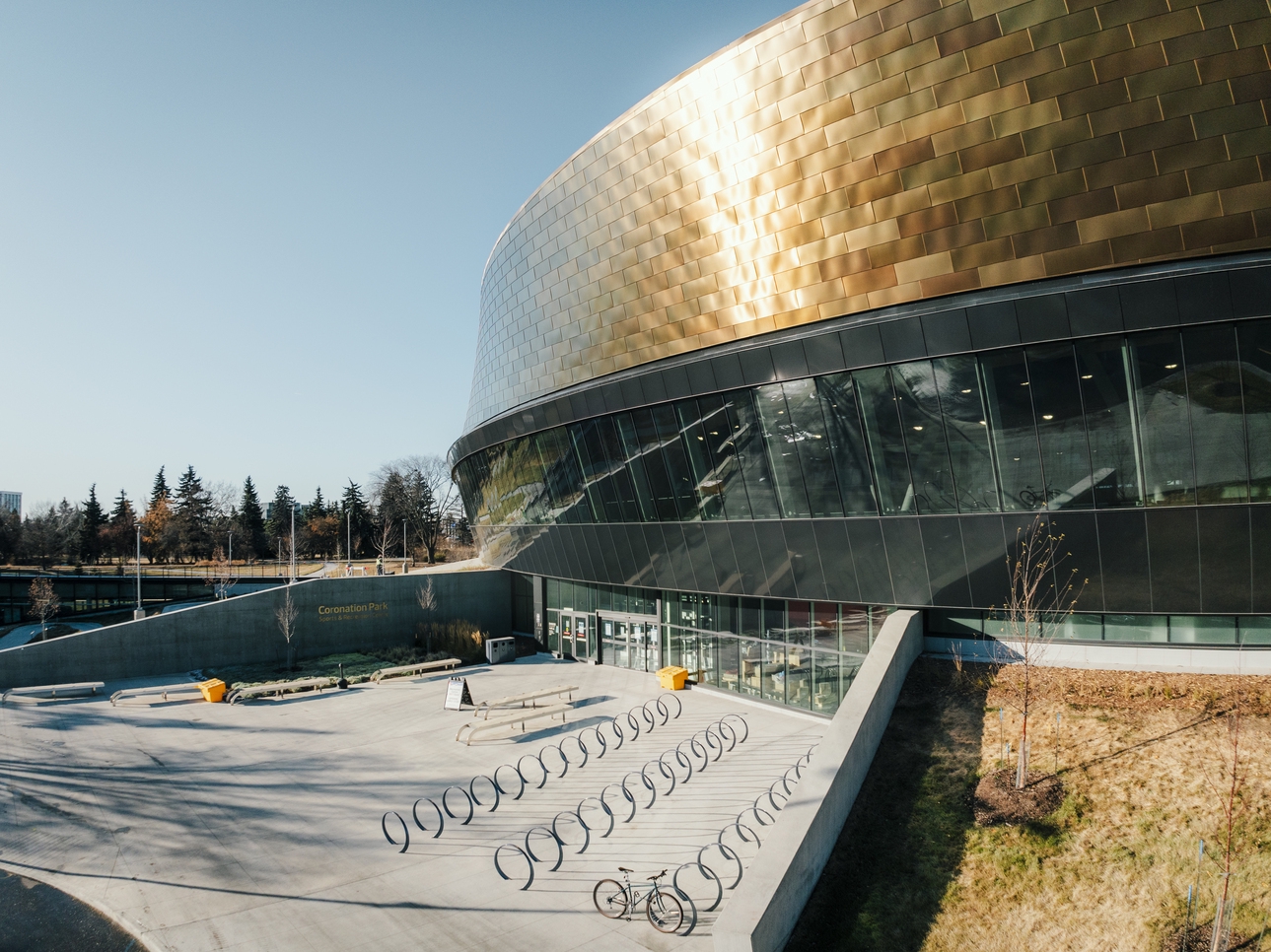 The facility, which includes the Peter Hemingway Aquatic Centre, will offer many amenities, such as a 333-metre running track, 50-metre pool, indoor courts, bouldering wall, a unique urban court, a fitness centre, various functional training spaces, two training studios, an indoor playground, a cycling track and more. The pool, running and cycling track together make Coronation Park Sports and Recreation Centre the first indoor triathlon training centre in North America.