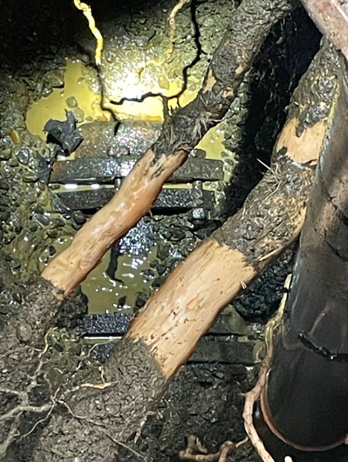 Tree roots around existing pipes are being carefully removed to prevent damage to pipelines and avoid service interruptions. |