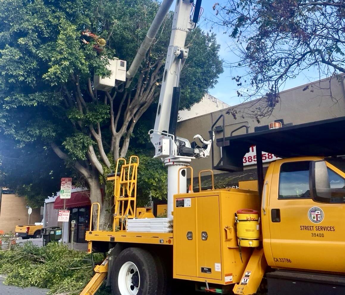 Our team partnered with the Urban Forestry Division for a tree trimming project along Pico Boulevard. Crews worked over the weekend on the stretch from Livonia Avenue to Robertson Boulevard, trimming 21 trees and improving visibility, safety, and overall conditions along the corridor. |