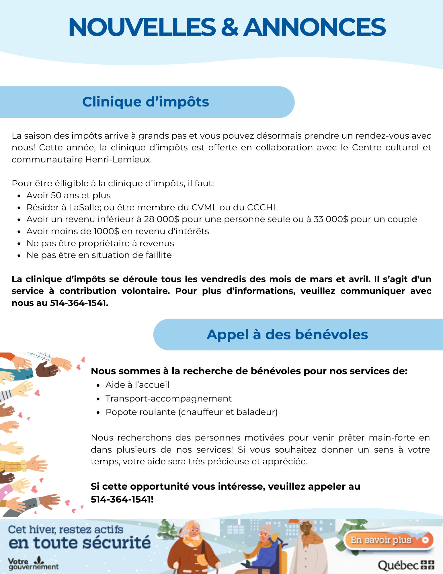 Nouvelles & annonces: Clinique d'impôts et appel à des bénévoles