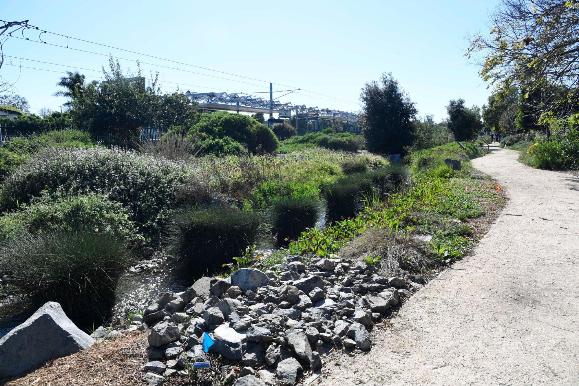 Los Angeles spent decades designing infrastructure to move water away from us as quickly as possible. Rivers were straightened, creeks were lined with concrete, and storm drains carried runoff directly to the ocean. We now understand the consequences of that approach. When rain falls on city streets, it carries oil, trash, and other pollutants into the storm drain system and out to our waterways. Projects like the Westwood Greenway take a different approach by slowing, capturing, and filtering stormwater before it reaches the ocean. |