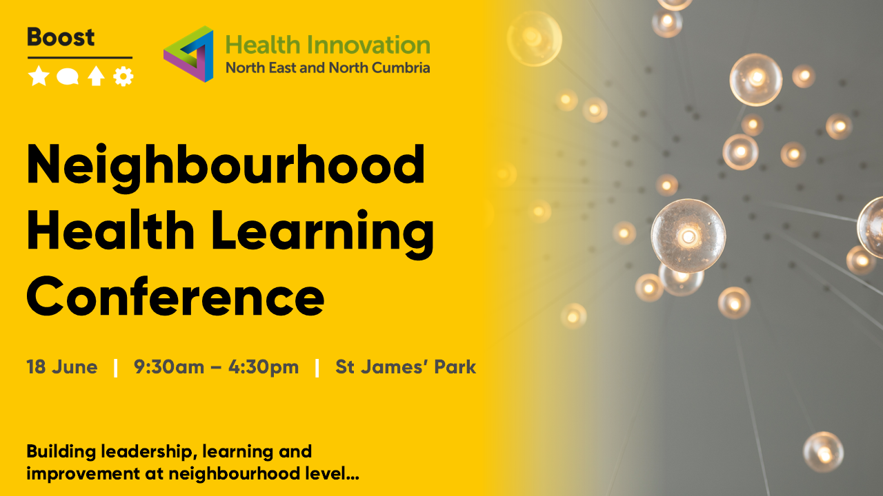 Join us on 18 June 2026 for the Neighbourhood Health Learning Conference - a region‑wide learning event for leaders and partners shaping neighbourhood health across North East and North Cumbria. A day of shared learning, practical insight and place‑based leadership to support real neighbourhood health improvement. |