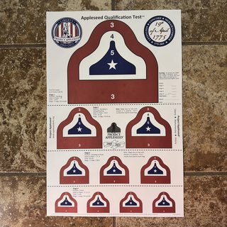 Back by popular demand are the RED, WHITE, and BLUE Appleseed Qualification Targets. The special targets were created last year to celebrate the 20th anniversary of Appleseed and the 250th anniversary of April 19, 1775. They will be issued again for use in April 2026 events only. Register for your April event now !!! |