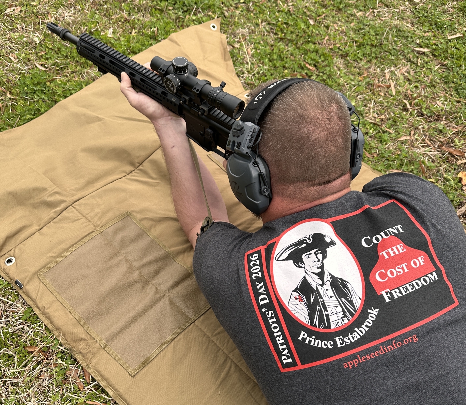 It's finally April !!! We're excited to continue our Five-year series of Patriots' Day patches and shirts entitled "We Are Descended from Dangerous Men." This year we honor Prince Estabrook. Remember, the only way to get one is to attend any Project Appleseed marksmanship clinic in April. Back by popular demand, the Red White and Blue AQT targets have returned for April 2026.