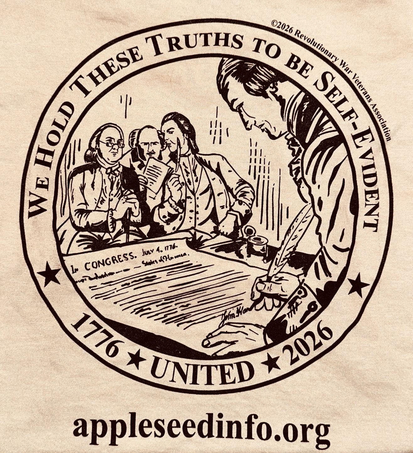 Interested in the 2026 shirt featuring the Declaration of Independence? Starting in May and running through August, this limited issue shirt will be available at Appleseed events. Washington Crossing the Delaware will close out the year September through December. Get them while they are available !!! |