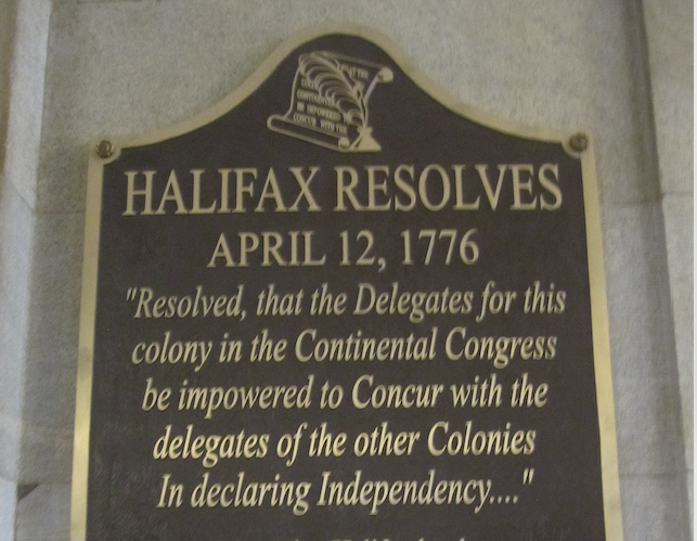 The Halifax Resolves are posted in Raleigh, NC. This photo is in the public domain. |