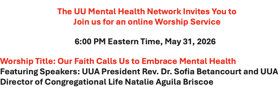 The UU Mental Health Network, is driven by a single goal; to empower the Beloved Community in honoring each individual 's unique mental health journey towards wellness..