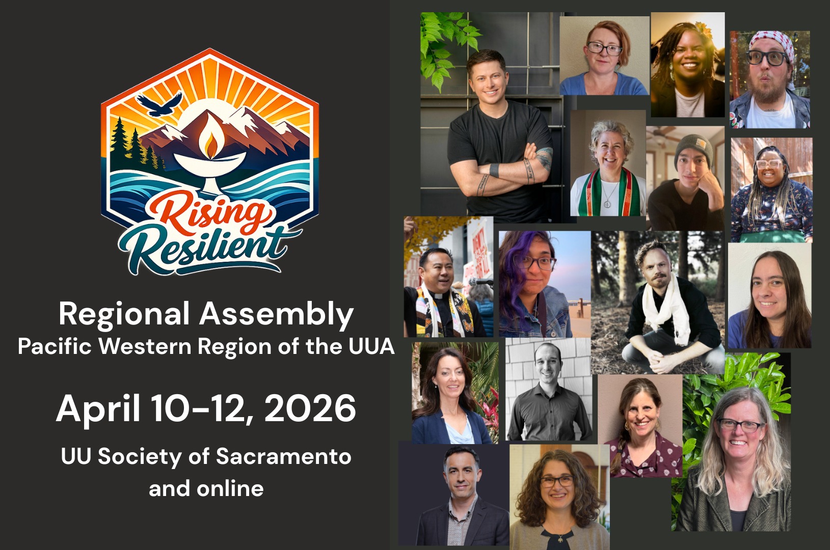 This month of April, our Regional Assembly is taking place. On April 10th, the Unitarian Universalist Society of Sacramento is opening its doors online and in-person to welcome UUs from all over the Pacific Western Region. Our coming together as a region alone is worth celebrating, but I also believe that our gathering is an affirmation of love, resilience, and community as an antidote to our challenging times.