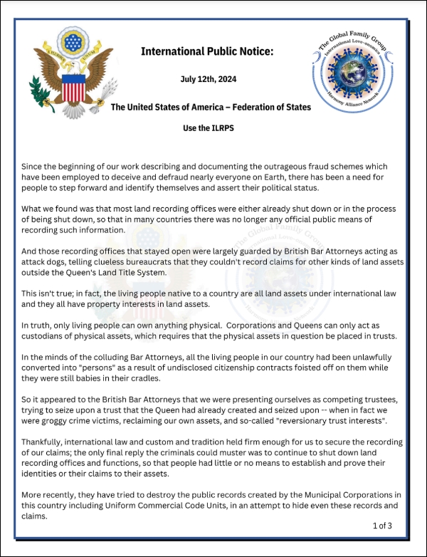 Be sure to read this important International Public notice posted July 12, 2024 by The United States of America - Federation of Sates |