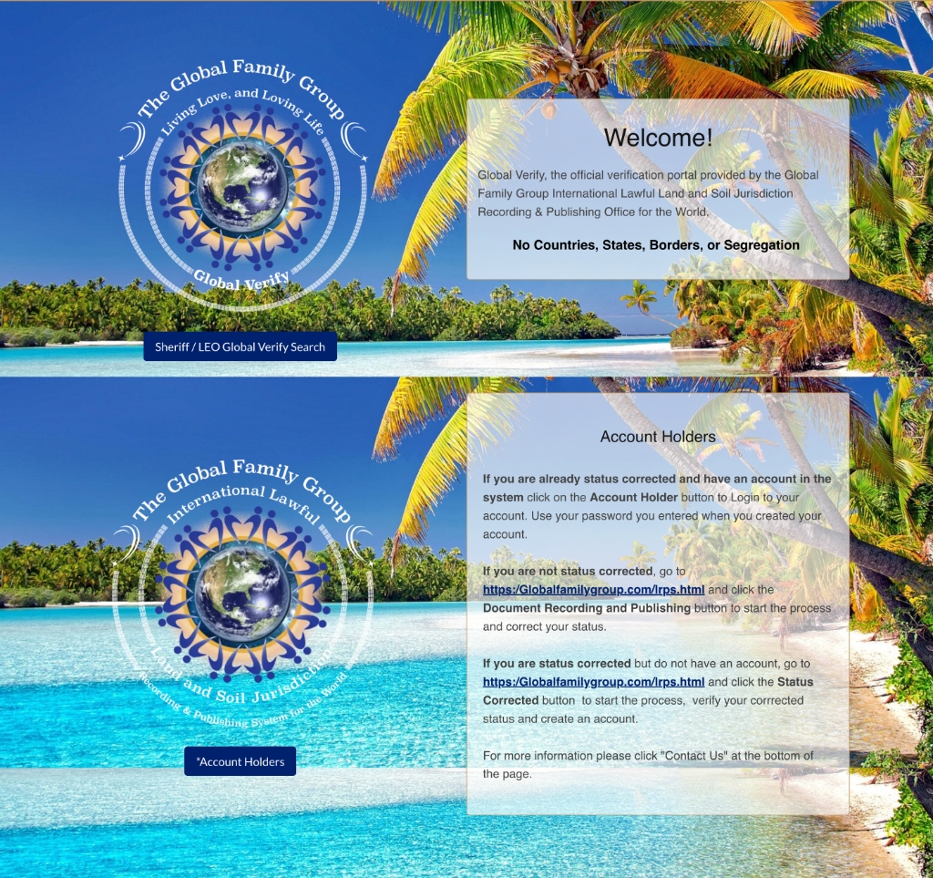 Global Verify, the official verification portal provided by the Global Family Group International Lawful Land and Soil Jurisdiction Recording & Publishing System for the world.