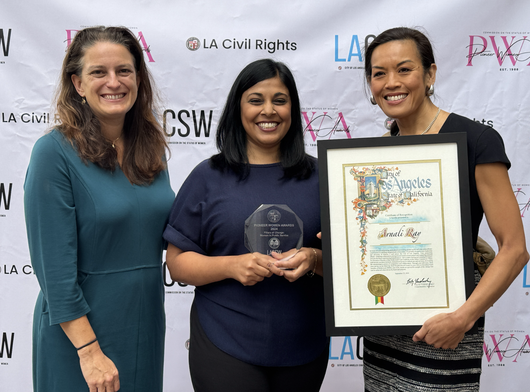 This week, I recognized Arnali Ray, a dedicated leader from Council District 5, with the Pioneer Women Award, which is presented each year to local female leaders who have contributed to promoting gender equity in Los Angeles. Arnali’s work in social services and healthcare, particularly her efforts to expand access to critical services for people experiencing homelessness, has made a lasting impact on our community. Her leadership at Hollywood Food Coalition and her advocacy for our most vulnerable residents is a true example of how collaboration and compassion can create meaningful change. I’m incredibly proud to celebrate her contributions and the difference she continues to make in Los Angeles. |