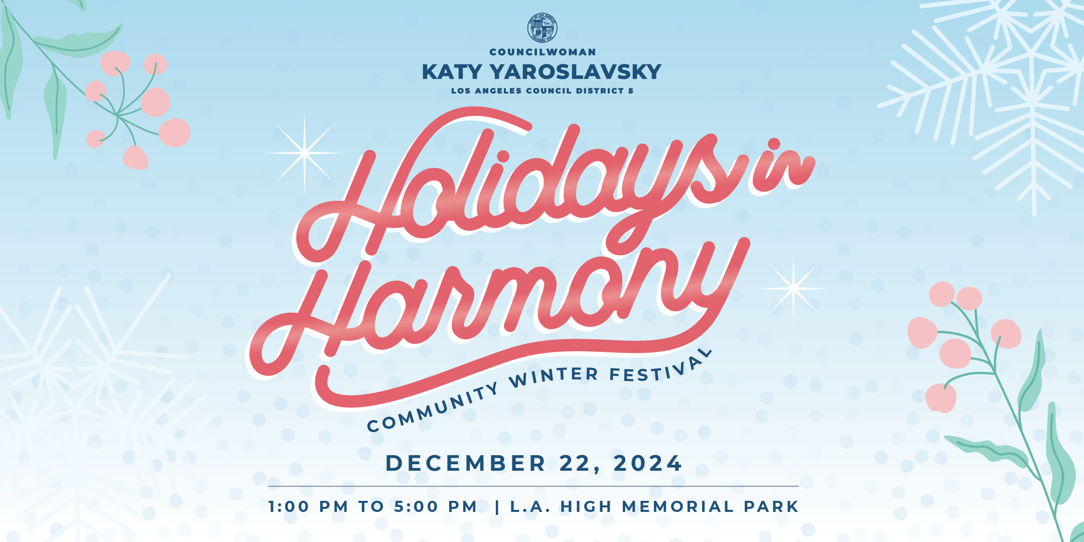 Join us for Holidays in Harmony TOMORROW! This holiday season, we’re bringing the community together at LA High Memorial Park for a winter festival that celebrates the rich traditions and diversity that make our neighborhoods so special.