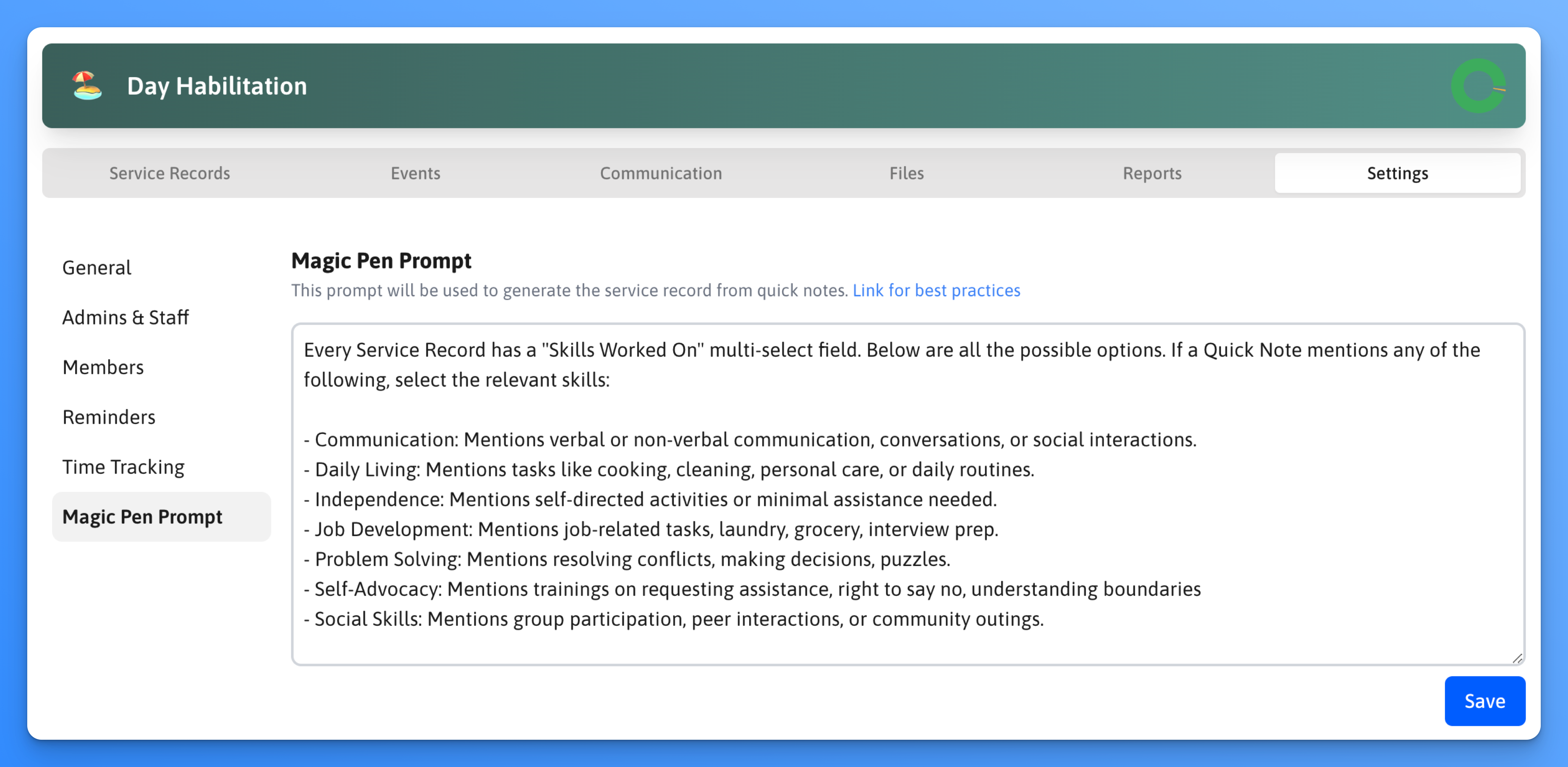 So, we developed the Magic Pen Prompt. This allows organizations to provide context about their operations to Kibu. Here is an example: